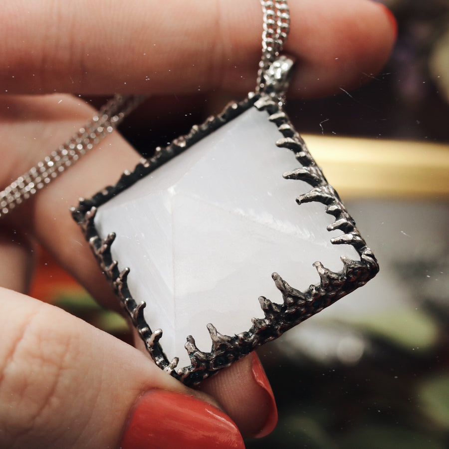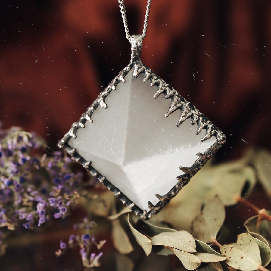 Sacred Selenite Icicle Crystal Pyramid Necklace #06