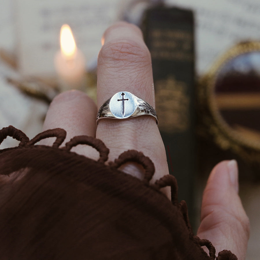 Zoom Sterling Silver Gothic Sword Sterling Silver Signet Ring