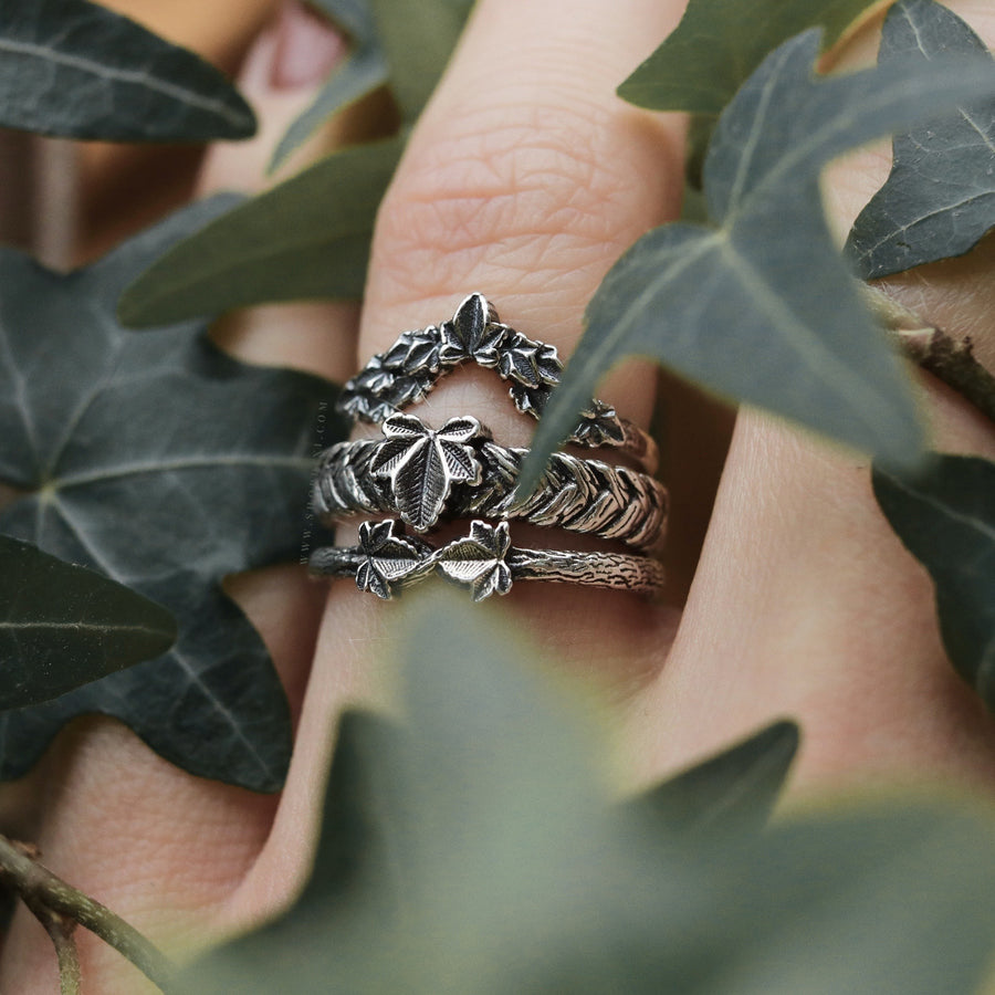 Zoom Victorian Aesthetic Nature Witch Ivy Hedera Stacking Rings