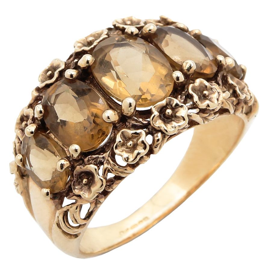 Artemis presents a unique 9ct Gold treasure from her personal treasure trove, featuring large statement citrine stones held within delicate gold flowers.