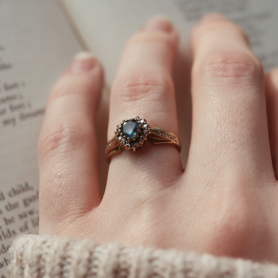 Magical unique 9ct gold ring with the most romantic ocean blue stone centre.