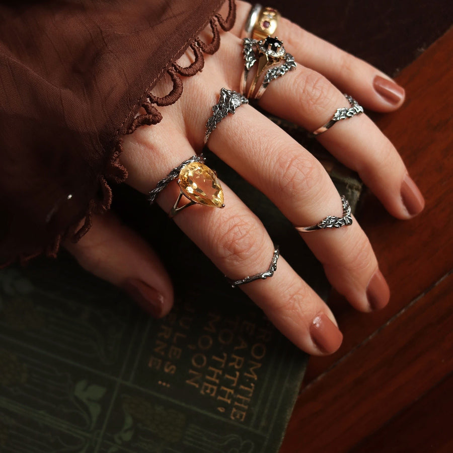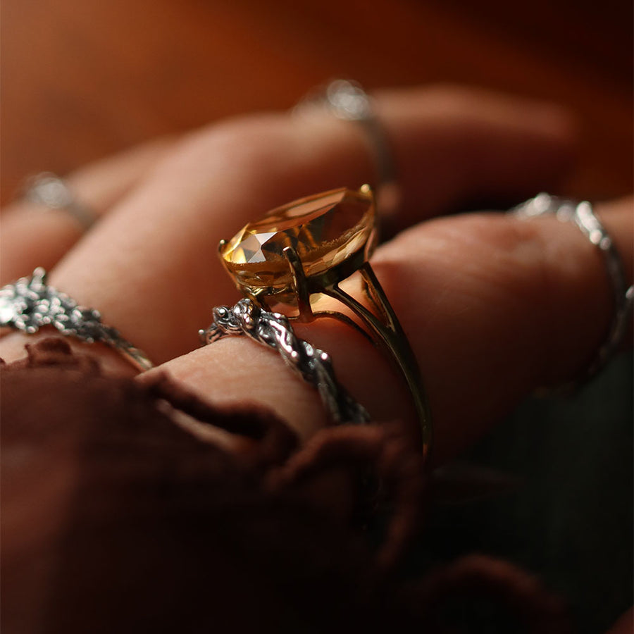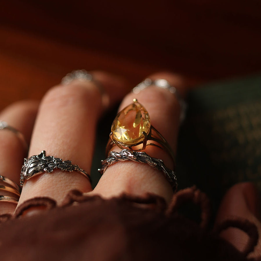 Magical unique 9ct Gold delicate stone ring featuring a large tear drop centre.